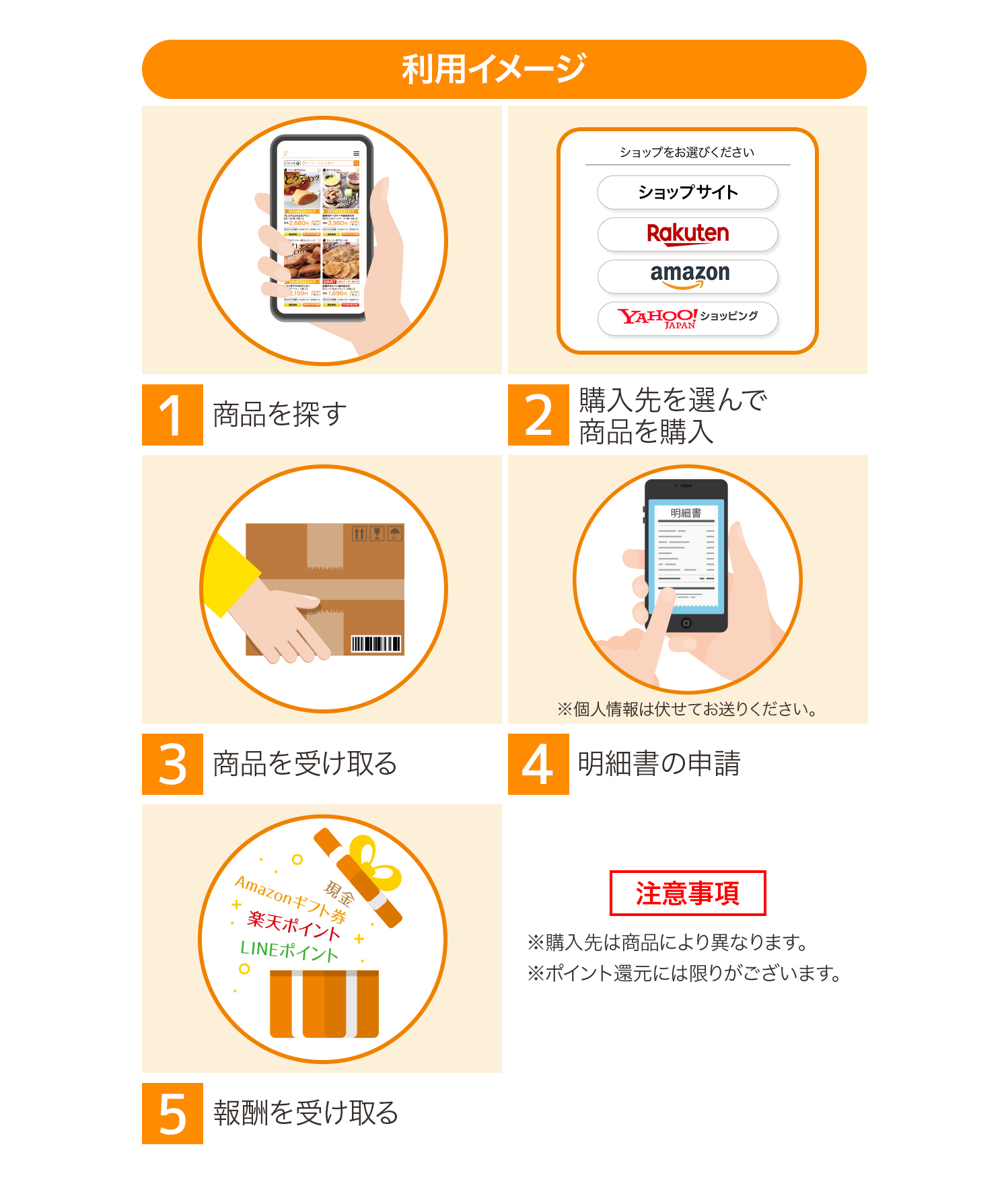 納品書や明細書、メールなど申請に必要な項目が記載されているものを添付してください。
