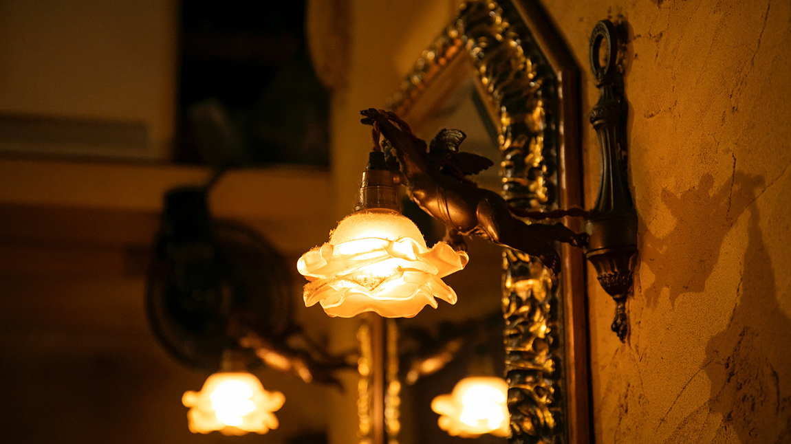 ミニカーや洋館をイメージさせるシャンデリア、絵画などの小物にもこだわりを持って配置している店内は、カウンター、テーブル、半個室の全45席をご用意。木製のテーブルとイスがより一層あたたかみをあたえてくれる造りとなっています。 また、店内の鏡には無料でサプライズメッセージや絵を描くことも◎ 主役の方を盛り上げるアイテムとしてご利用いただけます!