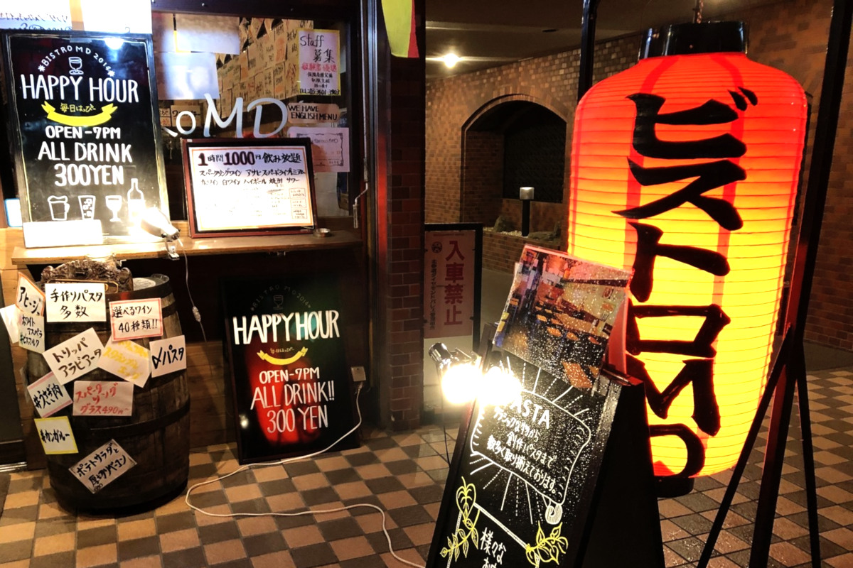 『ビストロMD』と書かれた大きな赤い提灯が目印のお店の店内は、壁一面に貼られたポップな手書きのメニューが粋を感じさせてくれます。 気の知れた仲間とワイワイ・ガヤガヤと楽しめます!