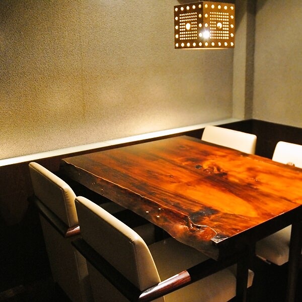 店内は淡い照明と濃い色の木目が重厚感をあたえる内装で、カウンター席とテーブルや掘りごたつ式の個室の全30席をご用意。 個室は2名~8名様までの人数に対応可能ですので、お打ち合わせやお顔合わせの場としてもご利用いただけます。