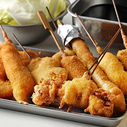 玉ねぎやかぼちゃなどの「野菜串」は1本80円から、牛肉や豚肉、白身魚などの「肉串・魚介串」は1本120円からとお手頃価格にてご用意!揚げたてサクサクの串かつは、本場大阪のお店にも引けを取らないとリピーター続出中です♪ どない家のルールとして、串かつのソースは二度付け禁止なのでご注意ください!
