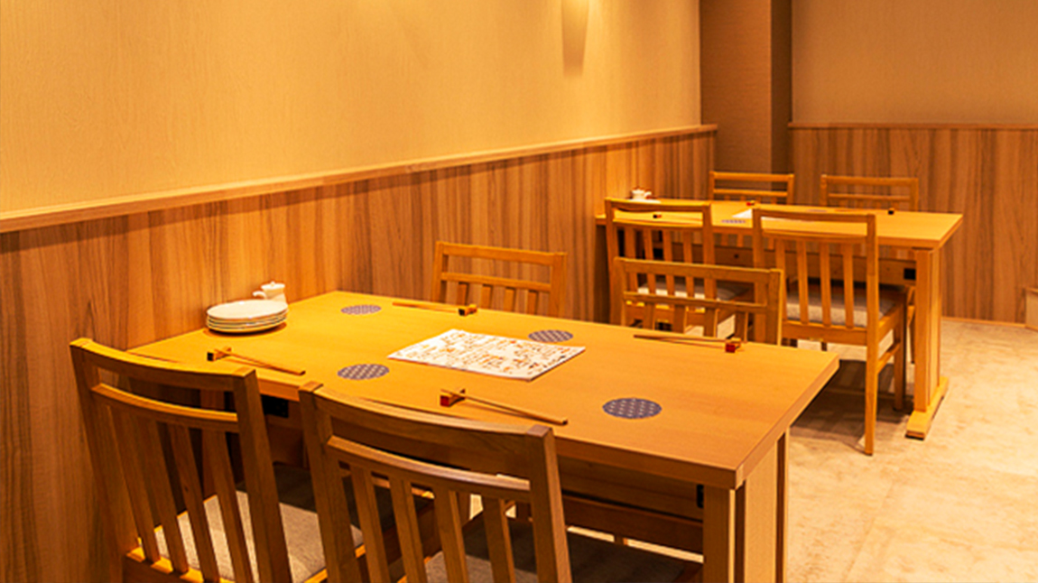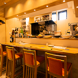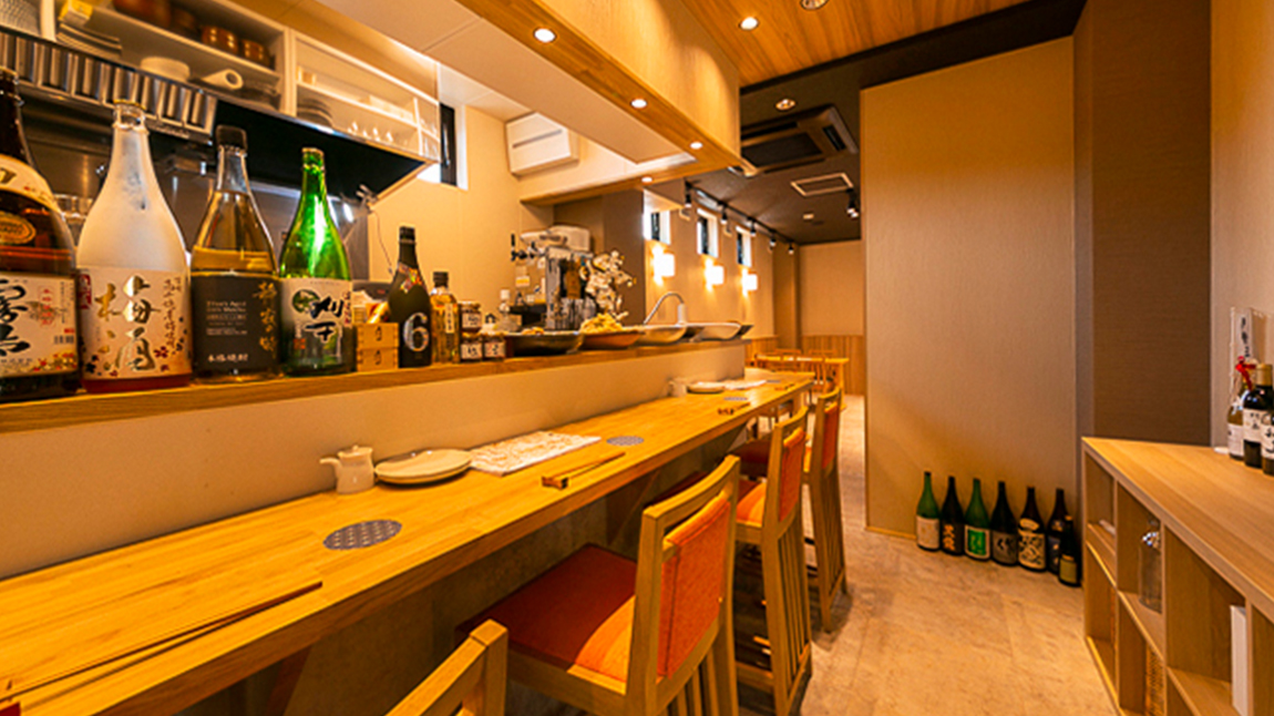 ベージュをベースに白木のテーブルがどこか落ち着きをあたえる店内。女将さんの『おかえりなさい』という挨拶が、よりほっこりさせる空間を生み出しています。 席はカウンターとテーブルあわせて全20席あり、6名様まで入れる個室も◎ 仕事や買物終わりに軽く一杯呑みたいときの利用はもちろん、接待などのビジネスシーンにも活用できます。