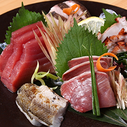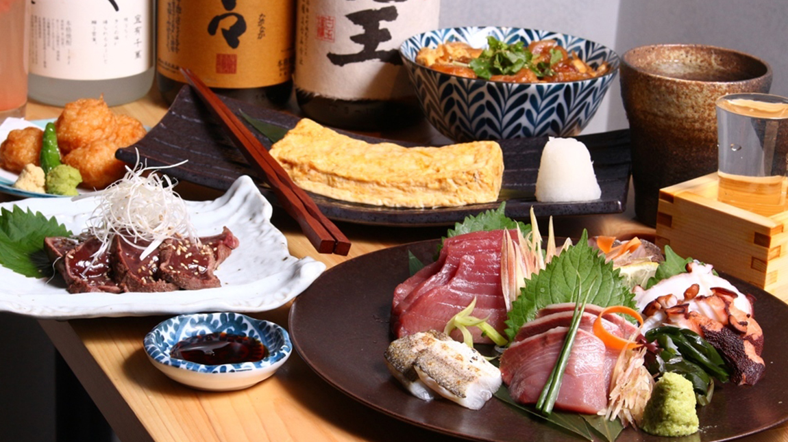 ちょっとしたつまみや、海鮮料理、お肉など豊富な一品料理を味わえます。日本酒に合わせてお召し上がりいただきたいのは当店自慢のお刺身で、マグロやタコ、カツオなど旬の魚介を厳選してご提供!その日のオススメが食べたいという方は、「鮮魚5種盛」をぜひお試しください。必ずご満足いただける逸品です!