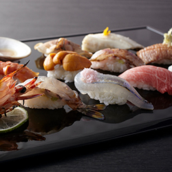 市場からの信頼も厚く、仕入れる魚介は新鮮そのもの。 旬の魚介で作られる握りと一品料理は、色彩も見た目も美しいものばかり。昼は4,500円~、夜は8,000円~の握りをご用意。 結婚記念日や昇進祝いなど、特別な日にもぜひご利用ください。