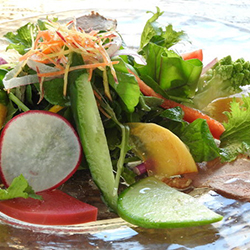 年間100種を超える野菜を栽培する地元横浜の老舗農家【平本ファーム】を中心に、様々な野菜を仕入れております。定番のものは元より、珍しい野菜までもがふんだんに味わえるのも【野菜レストランさいとう】の特徴。三浦より直送している魚介や肉とともにお楽しみください。