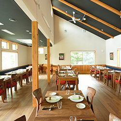 自然光が差し込む落ち着いた空間は、天然素材にこだわった内装で包み込まれるような温かい雰囲気。気軽に野菜を美味しく食べていただきたいという想いから、フレンチ特有のマナーにはこだわらず、箸とカトラリーを準備しております。肩ひじを張らずに野菜を味わいながら大切な方との時間をお過ごしください。
