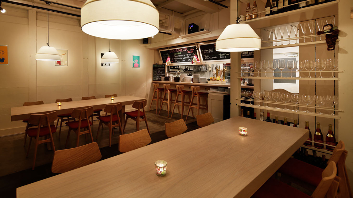 黄色の外観が印象的な店内は、素材を大切にした暖かく居心地の良い空間。コミューナルテーブルを中心としたダイニングと吹き抜ける風が気持ちの良いオープンテラスは普段使いにも抜群! 「ただいま」「おかえり」が違和感なく出てくるような雰囲気を大事にし、笑顔の絶えないスタッフが皆様をおもてなしいたします!