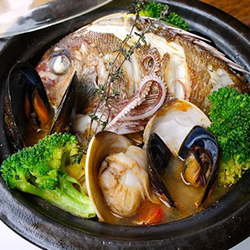 長年に渡り信頼を置く漁師から直送している新鮮な海の幸。 当店ではその素材のおいしさを最も引き出すため、地中海料理に和のエッセンスを入れたオリジナルの技法でご提供します♪ 中でも、マグロの希少部位を使ったステーキは、他店ではなかなか味わえないと大好評! 他にも大粒でクリーミーな生牡蠣や魚介のラザニアなど、多彩なメニューをご用意しています。 船内がモチーフの青と白を基調としたお洒落な空間でゆったりお過ごしください。