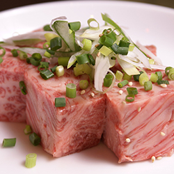 肉の柔らかさ、脂の味、見た目の美しさ。これらを追及するとたどり着く最高点が出産をしていないメス牛と言われております。オス牛に比べて、肉質自体がきめ細かく、舌触りもなめらか。当店ではこのお肉をさらにウェットエイジングする(長いもので150日熟成!)ことで、旨みを逃がさず、柔らかさを向上させた最高のお肉をご提供しております。