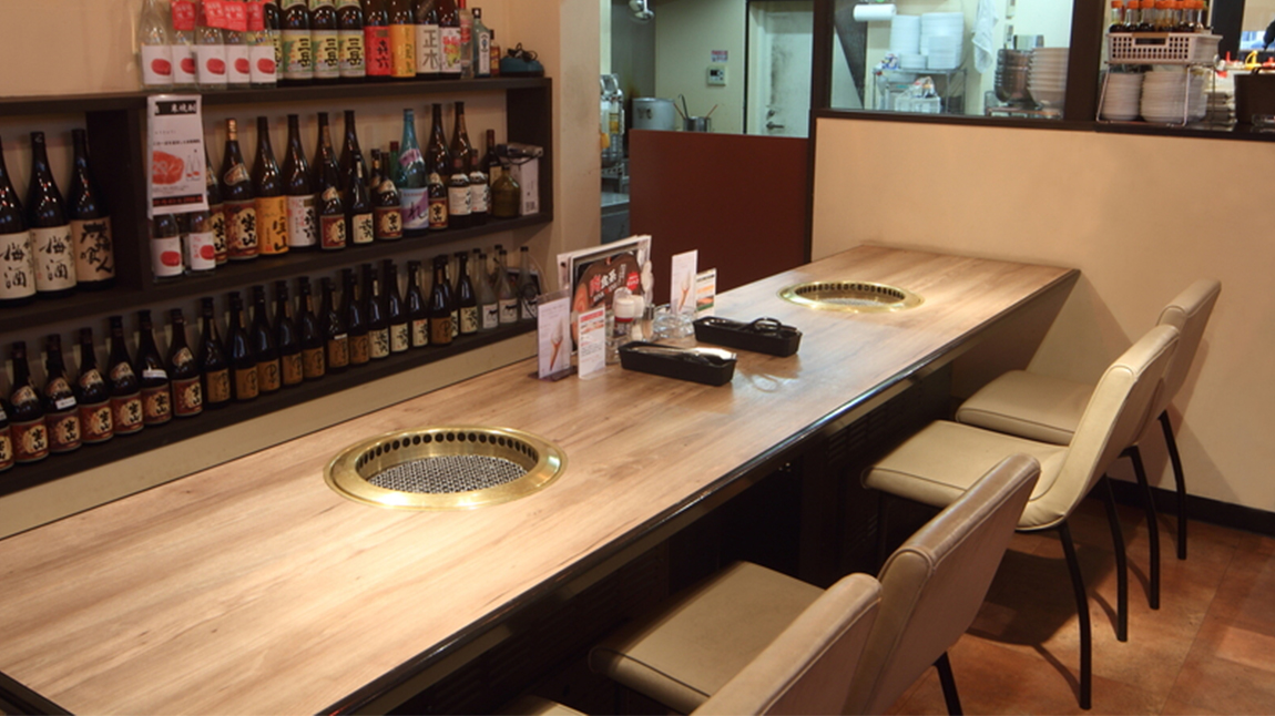 「タン塩」「サーロイン焼しゃぶ」「極上ロース」「本日の希少部位」「極ウマ赤身肉」、「ホルモン三種盛り」など、当店自慢のお肉のいろいろな部位を満喫いただける定番コースは、なんと税別5,000円! お席はカウンターとテーブルがあり全42席。半個室もあるため、忘年会や歓送迎会などの宴会時にもご利用いただけます。