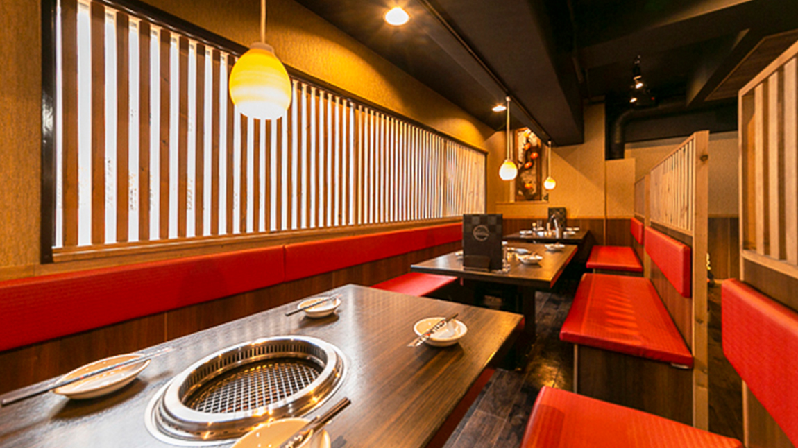 店内は赤の椅子が映えるお洒落なデザイン。お席はカウンター、テーブルと、8名様まで入れる完全個室をご用意。友達、同僚とはもちろん、お一人さまでもお気軽にご来店いただけます! お子さま用の椅子もご用意しておりますので、小さなお子さまをお連れのご家族さまも安心してお過ごしいただけます。