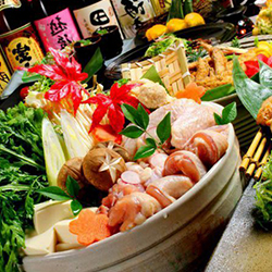 4,000円からとリーズナブルなコースは、料理内容も、前菜~お刺身~揚げ物~鍋~〆のうどんと、ご満足いただけること間違いなし! また、各コース料金にプラス800円で「朝妻 北乃風雪」「玉乃光」「名城 大吟醸」などの地酒も飲み放題になるプレミアム飲み放題もご用意!お酒が好きな方はぜひ!