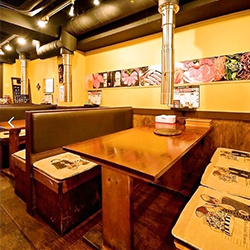 仕事帰りや、友人との集まり、ご家族での夕食などにもふらっと立ち寄れる【金丸】 店内は『ザ・焼肉店』という名にふさわしい、どこか大衆的で落ち着く雰囲気。一卓ごとに置かれる七輪を囲んで、会話を弾ませながらお食事をお楽しみいただけます。 もちろん、新年会や忘年会などの宴会にも対応!料理全9品・2時間飲み放題付きで3,980円と最大限に価格を抑えたプランから、ユッケや特上シマチョウなどを含む全14品で8,500円の贅沢プランまでご用意しておりますので、お気軽にご相談ください。